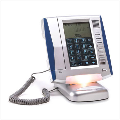 12 digit calculator, calendar and time display nightlight.Silver color. 7 3/4 X 7 1/2 X 2 1/2''HUses 3 ''AA'' batteries (not included)    (1 EA) WFM-36431