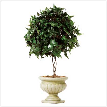 IVY TOPIARY (31280) Plant a bit of Grecian elegance with this bushy green ball of always-green ivy sprouting from a stone-finished polyresin pot. 8" diameter x 12 3/4" high. 1 EACH $12.95 (page 35) |